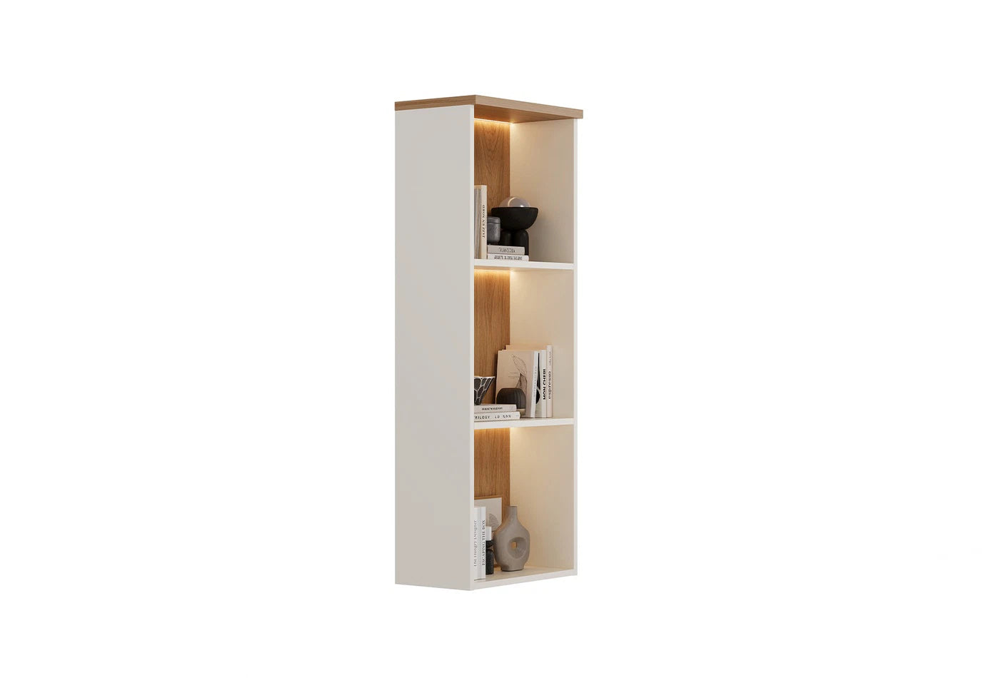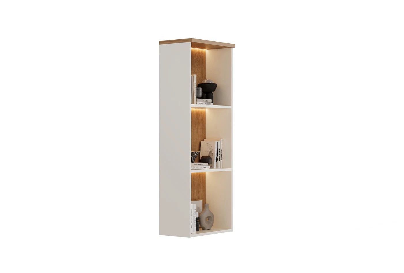 Съчетава естествените и модерни дървесни тонове с кантри дизайн, като привлича вниманието със съчетанието на дъб и кремави цветове. Функцията за осветителние добавя допълнителна практичност, като същевременно придава елегантен и стилен вид.